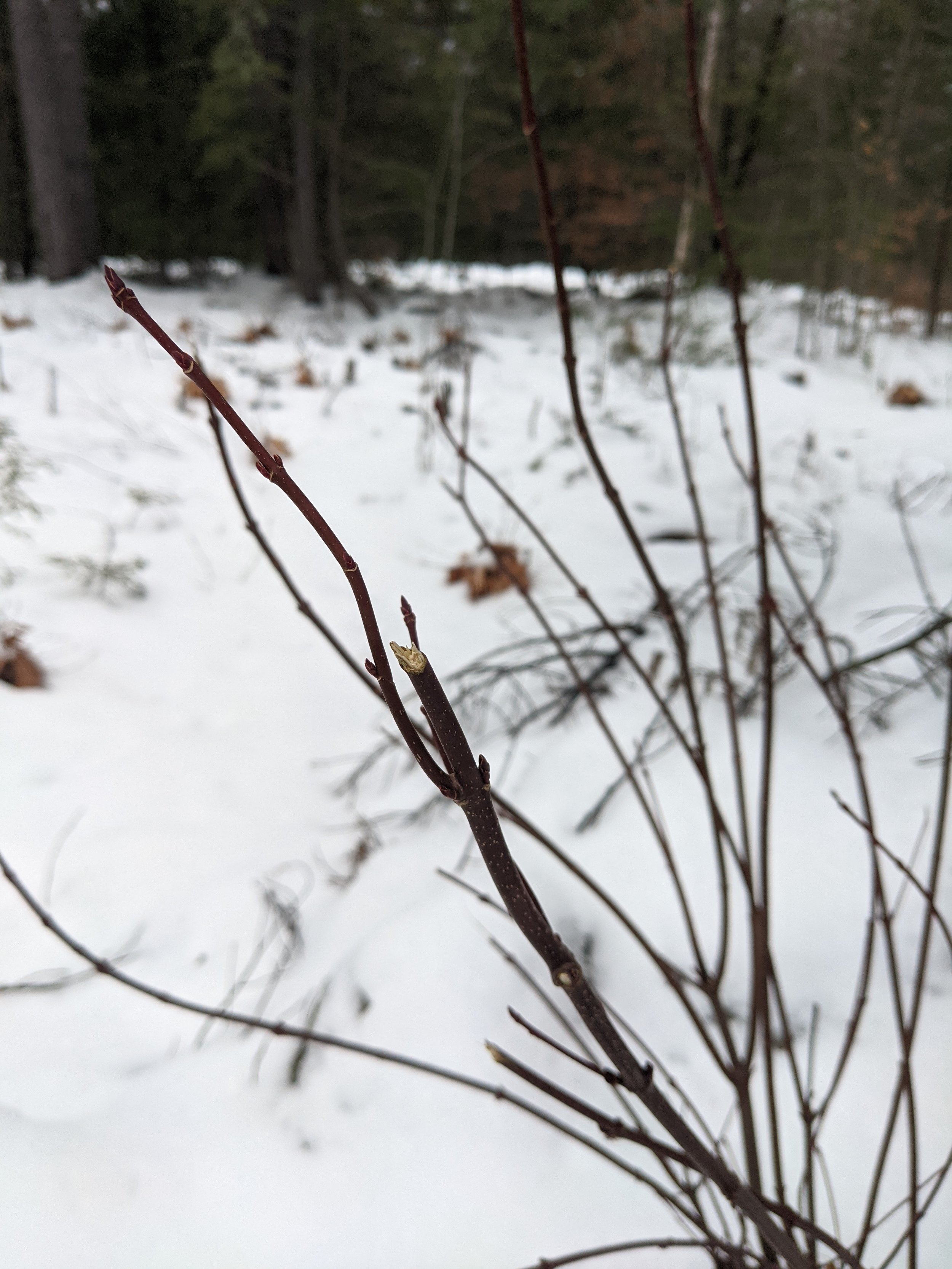 The biggest threat to nursery trees is deer browsing. In the winter when most food sources are gone, Deer enjoy browsing young tree bark to get at the cambium layer where sugars are transported. Even small amounts of damage to a sapling’s bark may be too much for a young tree. Deer will jump over a six foot tall fence, so keeping them out of an area is very difficult. At the nursery we use second hand wire fencing to create a cage around our larger beds. For individual trees, wrapping a tight cylinder of material around the trunk works well. We use fencing, hardware cloth, old window screens, and sometimes plastic pipe to protect our trees. We also plant some trees and shrubs that are specifically designed to attract and feed deer. These include the fast growing Red Osier Dogwood, a native species with vibrant purple bark, and Beech trees. Keeping trees and shrubs like this on the outskirts of your more valuable plants will do a good job at deterring any curious nibbles.If you don't have any extra wire laying around, or don't want to buy new materials (we don't blame you) a free, zero-waste alternative is to use invasive rose and barberry. These thorny invasives, which you can learn about here, grow quickly and abundantly. To use these, cut two or three large branches and gently lay them around your tree of interest making sure to cover the entire height of your sapling. We've found this to be an extremely effective deterrent, and once winter is over you can burn the branches for biochar, or simply chop it up and leave it as mulch around your tree. Japanese Barberry thorns will deter even the hungriest deer